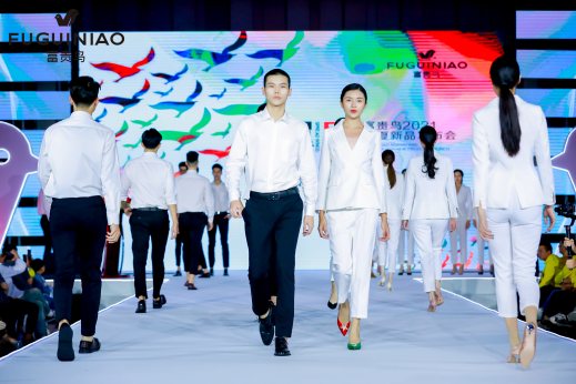 走进秀场,两只鸟形LOGO牌对立而视,蔚为壮观,与此次“翼展”主题互为融合,突现了富贵鸟品牌蜕变犹如双翼,为品牌的精神力量得以优雅呈现,是锐意进取的魅力所在,同时象征着富贵鸟即将展翅腾飞。